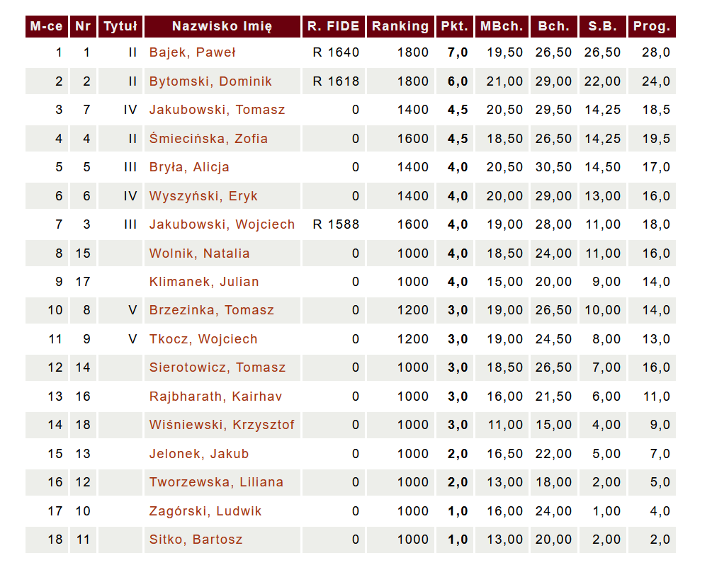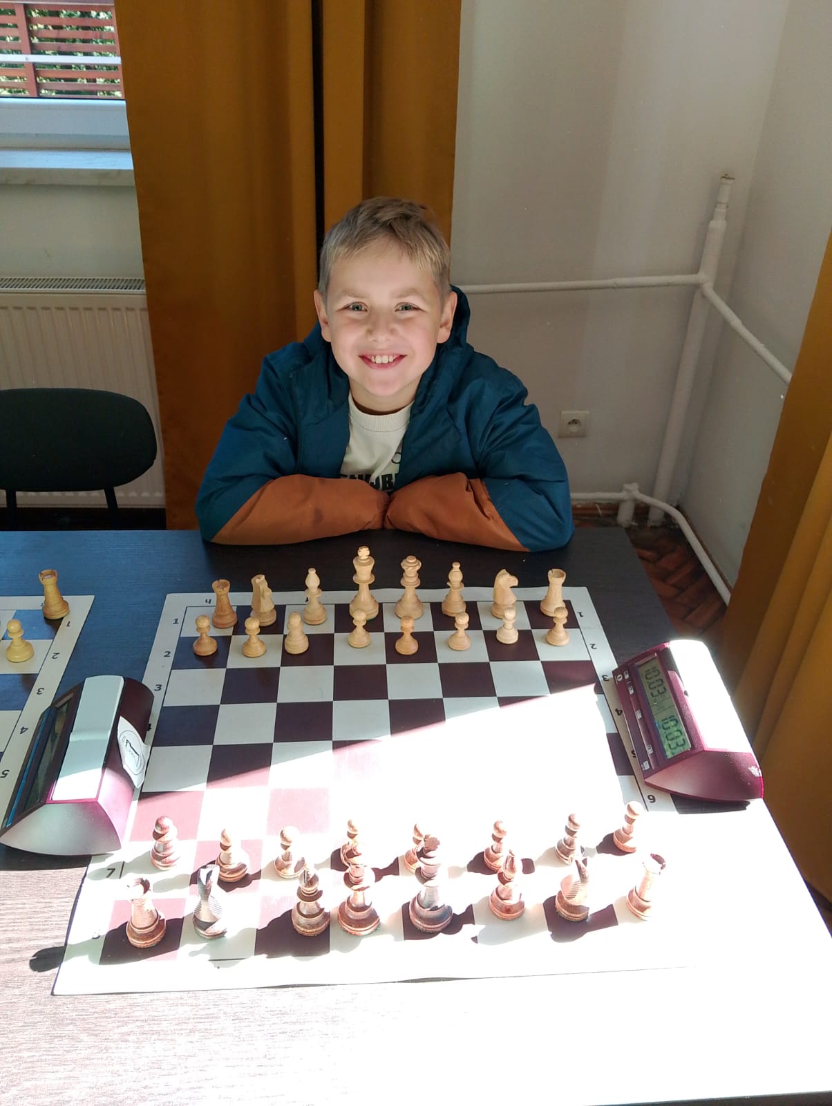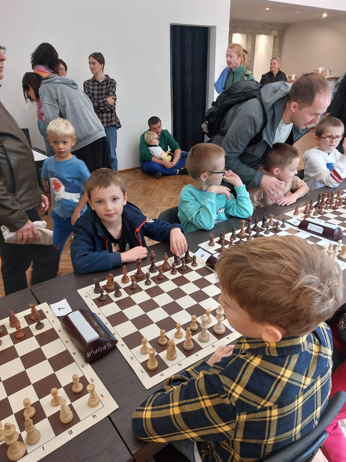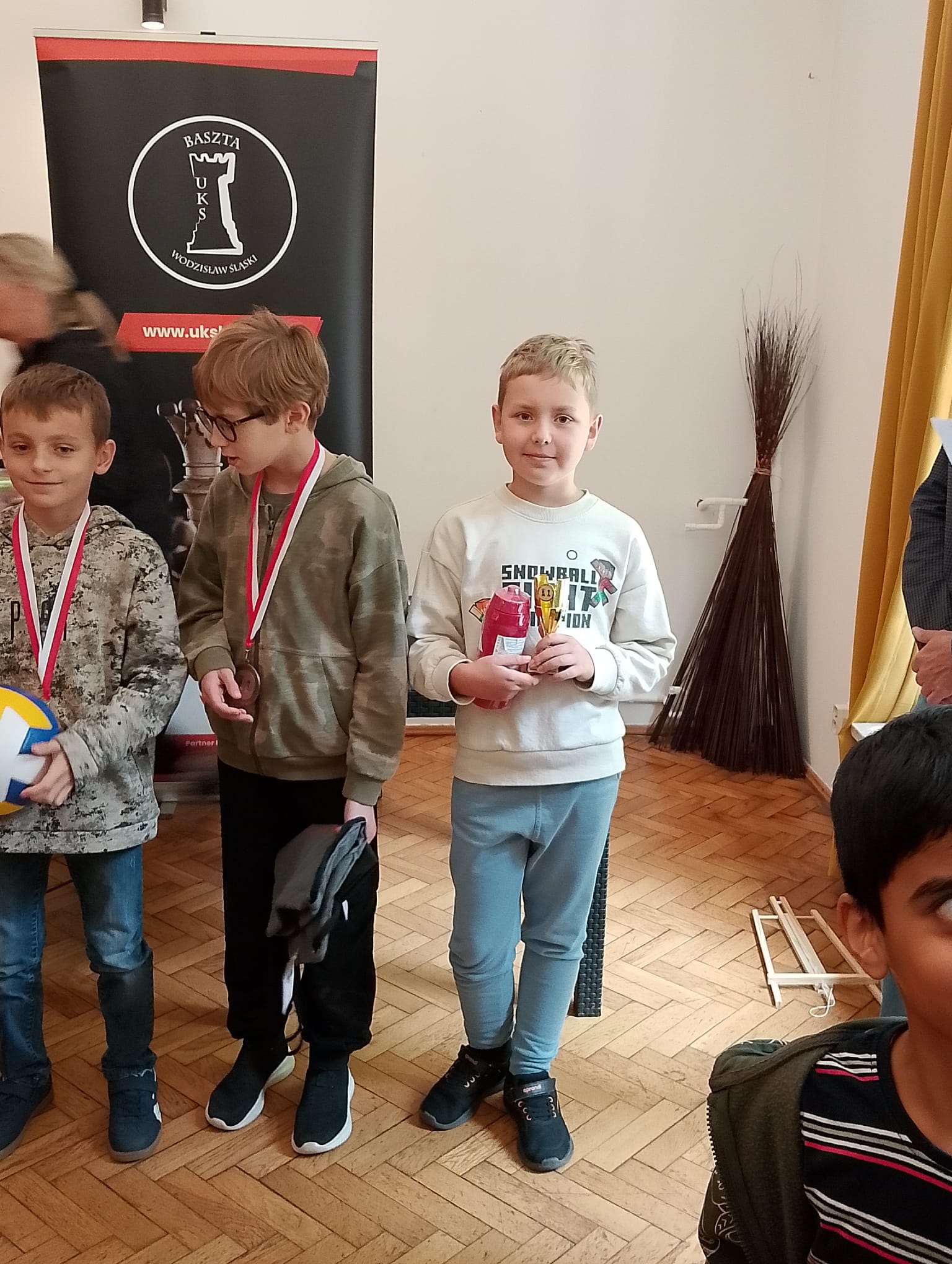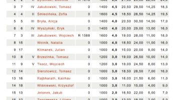 Jak się okazało była to dopiero rozgrzewka przed niedzielną rywalizacją w Wodzisławiu Śląskim! W grupie do lat 8 startowało 18 graczy. Tym razem odrobinę szybsze tempo 10 +3 sek/posunięcie sprzyjało “wykręceniu” jeszcze lepszego wyniku. Natalia Wolnik zdobyła 4 punkty, co pozwoliło jej uplasować się na wysokiej 8 pozycji. Szczególnym osiągnięciem młodej szachistki było zwycięstwo nad zawod nikiem z rankingiem ELO 1588! Tuż za nią z takim samym dorobkiem punktów zameldował się Julian Klimanek, wielkie brawa! Starsza z sióstr, Zuzia, zagrała w grupie do lat 11. Towarzyszył jej Aleksander Giemza. Zawodnicy zdobywali cenne doświadczenie, które zaprocentuje w przyszłości.